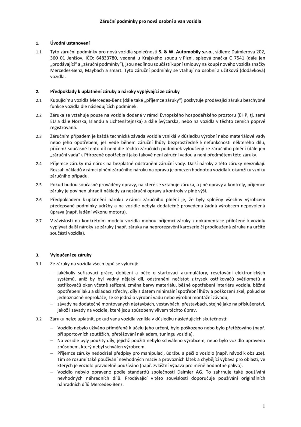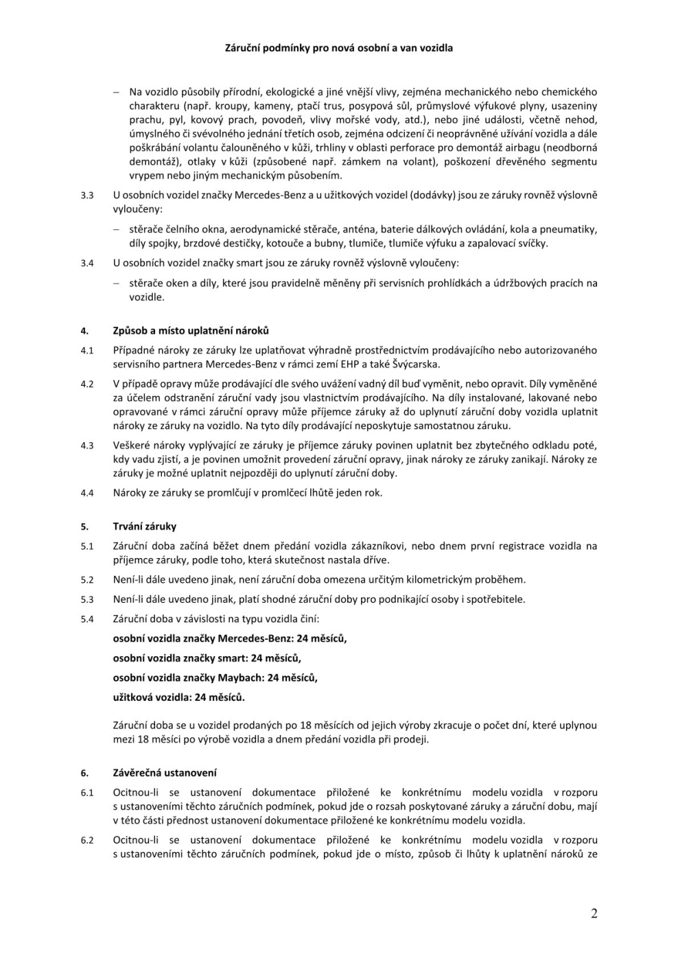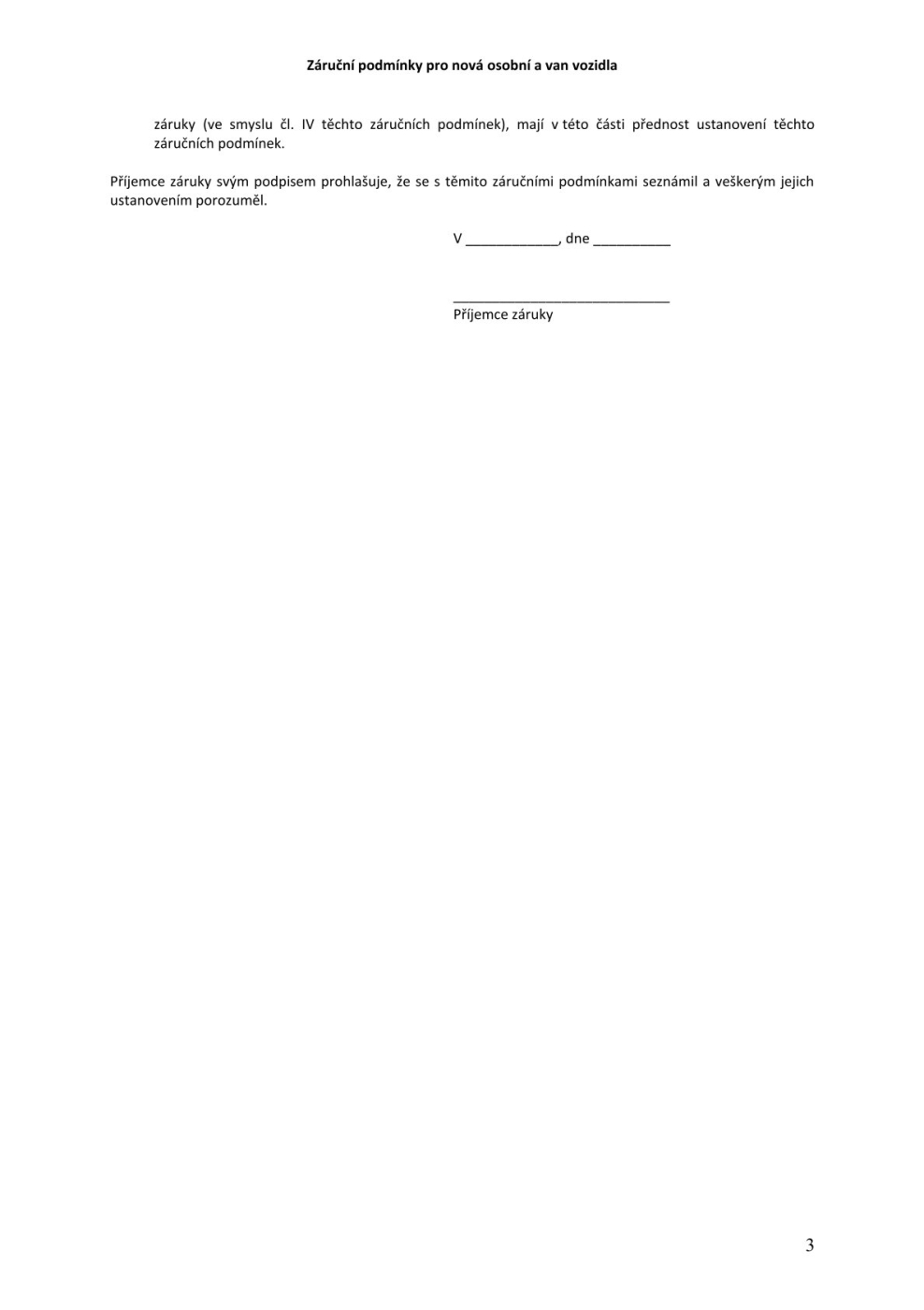 Záruční podmínky pro nová a dodávková vozidla